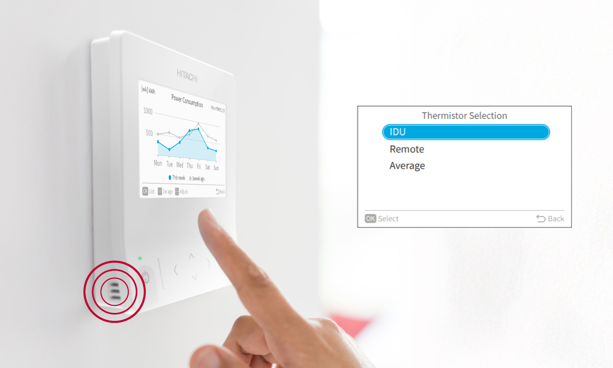 Most Hitachi controllers and thermostats for airHome residential range, airCore light commercial range and air365 VRF enable the HVAC professionals to set a calibration of the setpoint, for cooling and/or heating mode individually.